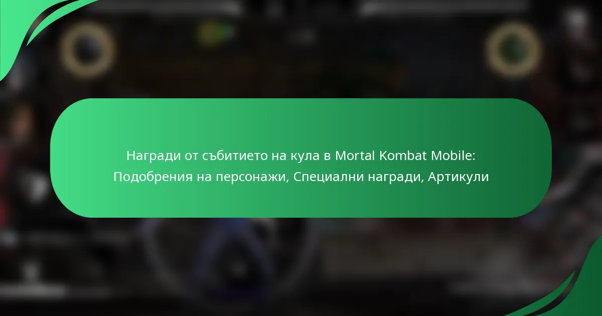 Събитието Tower в Mortal Kombat Mobile предлага на играчите вълнуваща възможност да спечелят ъпгрейди на персонажи, специални награди и ценни предмети. Чрез участие в събитието, играчите могат да подобрят способностите на своите персонажи, да отключат ексклузивни кожи и да получат уникални предимства в битките. Тези награди не само подобряват игровото изживяване, но също така позволяват по-голяма персонализация и стратегическо развитие.